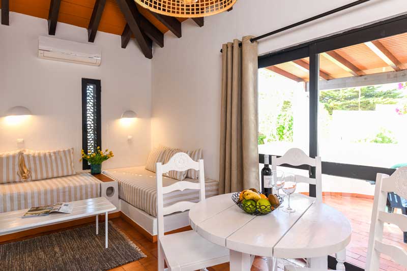 Villa’s/appartementen (T1) met één slaapkamer en twee bedden in de woonkamer, met een capaciteit voor maximaal vier personen.